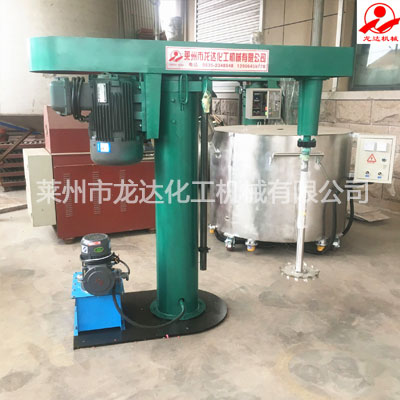 升降分散機:升降分散機主要是針對不同粘度漿狀的液體原料進行粉碎、分散、乳化、混合,通過分散盤上下劇齒的高速運轉的新型攪拌設備。是涂料等固體進行攪拌、分散、溶解的設備。升降分散機廣泛應用涂料、油墨、顏料、膠粘劑等化工產品的攪拌、分散、溶解過程。升降分散機該機由機械升降、主傳動、攪拌系統、導向機構、電控箱五部分組成,各部分結構緊湊合理。分散盤型式:平盤鋸齒式、三義槳式、碟式。升降分散機采用電磁調速、變頻調速和三速等各種規格電機運轉穩定有力,適合多種粘度。液壓和機械兩種升降形式,升降旋轉自如,,適應各種位置;普通及防爆配置,安全可靠,操作維護簡單;生產連續性強,對物料可進行快速分散和溶解、分散效果好、運轉平穩、安裝簡便。針對不同物料粘度及處理量有不同的功率及型號。