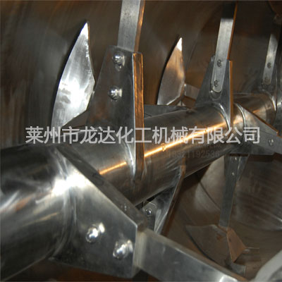 犁刀混合機(jī)由圓筒體、傳動(dòng)機(jī)構(gòu)、犁刀、飛刀四部組成;工作時(shí),犁刀做圓周運(yùn)動(dòng),物料被犁刀刀面分流成兩個(gè)方向形成雙向物料流,與兩側(cè)犁刀分流過來的物料相互交叉形成對流,當(dāng)物料流經(jīng)高速飛刀時(shí)又被高速飛刀葉片剪切和拋灑,從而在較短時(shí)間內(nèi)達(dá)到均勻混合。本機(jī)的混合精度高,混合時(shí)不產(chǎn)生離析,尤其對于容易團(tuán)聚的物料,可以起到解聚和打散的作用。